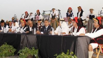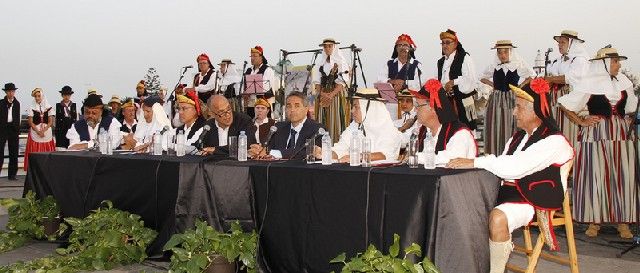 El alcalde, Manuel Fajardo Feo, y el concejal de Fiestas, Víctor San Ginés, compartieron la mesa presidencial con los seis miembros de Coros y Danzas Arrecife que compartieron la lectura del pregón. Cada uno de ellos fue recordando cómo eran las fiestas de antaño, que se celebraban en la calle de Adelante, hoy conocida como Avenida Marítima.