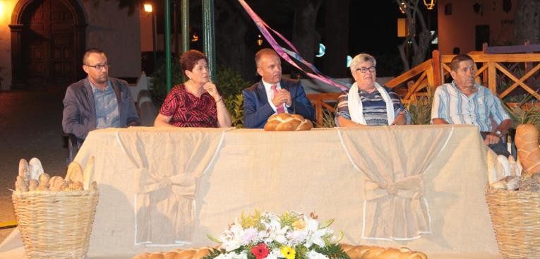 David García, presentador del acto, dio lectura a unos textos cedidos por Francisco Hernández, cronista Oficial de Teguise. Textos cargados de mucha historia sobre los inicios de la era del pan y cómo llegó a instalarse en Tinajo, así como quiénes fueron los primeros panaderos. Algunos de ellos tuvieron que dejarlo porque era muy sacrificado y la rentabilidad mínima, otros sin embargo con el paso del tiempo han incluido nueva maquinaría que les permite que el trabajo sea mucho más placentero y la producción vaya aumentando para abastecer a los clientes. Llegando también a la elaboración de la repostería tradicional en la que utilizan las recetas heredadas de las abuelas como, mantecados, mimos, magdalenas o bizcochones. En la actualidad Tinajo cuenta con las panaderías de, Los Morros de San roque, Hnos. Pacheco, Tajaste, Pura Alayón etc.