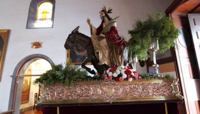 A las 11 de la mañana y con las tres naves del templo al completo daba comienzo la celebración de la Eucaristía presidida por el párroco titular Juan Carlos Medina. Una misa que comenzó con la bendición de las palmas y olivos, momento que se vivió con mucha animación con los cantos interpretados por el 'Coro Parroquial', dirigido por el profesor de religión, José Juan Umpierrez. Cantos a los que también se unió la asamblea ocupando un lugar destacado junto al Altar Mayor los niños y niñas que se están preparando para recibir su Primera Comunión.