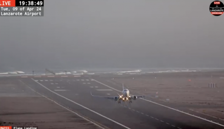 Según pudo captar una cámara de Lanzarote Webcam, en ese momento, una aeronave de la compañía británica Jet2, se aproximó a la pista de aterrizaje y tras varios segundos en el suelo volvió a emprender el vuelo.