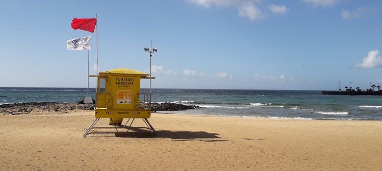 Las malas condiciones en el mar, que continúan pese a haberse desactivado el aviso amarillo por fenómenos costeros, han obligado a izar banderas amarillas y rojas en las playas de la isla. En el caso de El Reducto y de la Playa Chica de Puerto del Carmen, se encuentran afectadas además por presencia de medusas, habiéndose prohibido el baño.