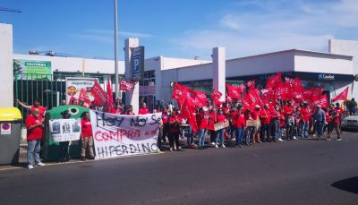El sindicato se ha manifestado este viernes a las puertas de Hiperdino Valterra en torno a las 09:30, y posteriormente, sobre las 11:30, se ha trasladado a las puertas de Chacón Lanzarote.