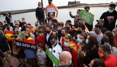 En la concentración participó el líder nacional del partido, Santiago Abascal, y unas 50 personas se manifestaron frente a los asistentes al grito de “ningún ser humano es ilegal”, generándose escenas de tensión en las que intervino la Policía para separar a ambas partes.