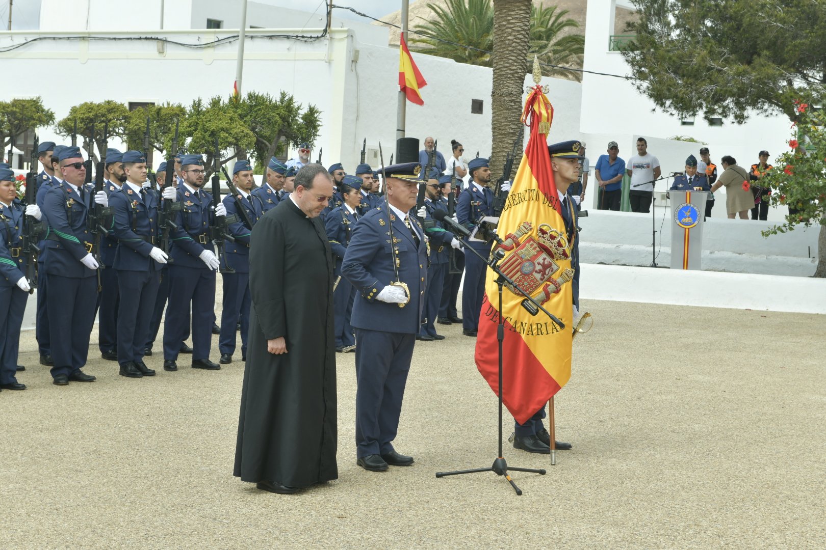 El acto comenzó con la llegada del general segundo jefe del Mando Aéreo de Canarias, acompañado por el alcalde de San Bartolomé, Isidro Pérez Martín. Tras recibir los honores de ordenanza, el general Ballesta pasó revista a la fuerza participante, compuesta por una Escuadra de Gastadores, dos secciones formadas con personal de la Base Aérea de Lanzarote y Escuadrón de Vigilancia Aérea n.º 22, así como la Unidad de Música del Mando Aéreo de Canarias y los Guiones de las unidades del MACAN.