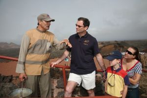 En esta ocasión, López Alegría quiso conocer de primera mano y enseñarle a sus hijos los maravillosos paisajes del parque de Las Montañas de Fuego. Además, pudieron comprobar las características de esta zona emblemática de la isla de los volcanes que continúa caliente en lugares concretos como la ruta dentro del parque.