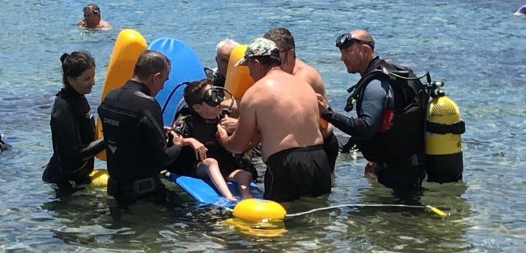 Entre las más de 12 horas de diversión y entretenimiento para este sábado, 23, víspera de la festividad de San Juan, el Ayuntamiento de Tías había programado para aquellas personas que desearan iniciarse el mundo subacuático una serie de inmersiones, entre ellas unas especiales para personas con movilidad reducida o que padezcan alguna discapacidad.