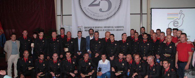 El Consorcio de Seguridad y Emergencias del Cabildo de Lanzarote estaba este jueves de enhorabuena. Y es que se celebraban los 25 años de existencia del Parque de Bomberos de Lanzarote en su sede de Argana. El aniversario se ha conmemorado en un acto al que han asistido el presidente del Cabildo de Lanzarote, Pedro San Ginés, y también el presidente del Gobierno de Canarias, Fernando Clavijo, entre otras autoridades. Los bomberos mostraron un vídeo que resumía las más de 18.000 actuaciones que han realizado a lo largo de este cuarto de siglo.