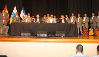 Finalizada la lectura del pregón, el alcalde y concejal hicieron entrega de un cuadro con el cartel anunciador de las fiestas y el escudo heráldico del municipio, además de entregarles una réplica del cartel a cada componente.