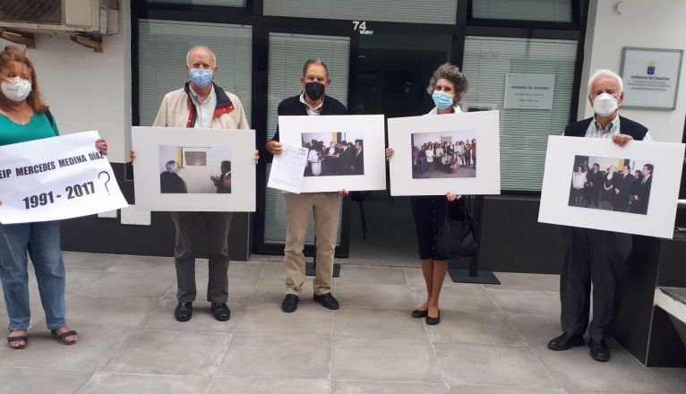 El que fuera alcalde de la capital, José María Espino, el primer director del Mercedes Medina, Luis Morales, el inspector de Educación Fernando Curbelo Fernández, una maestra y ex alumna del centro, Irene Betancor, y la profesora Rosa Barreto, maestra durante 25 años en el colegio, entregaron este martes las firmas en la Dirección Insular de Educación, donde volvieron a concentrarse para hacer oír su reivindicación.