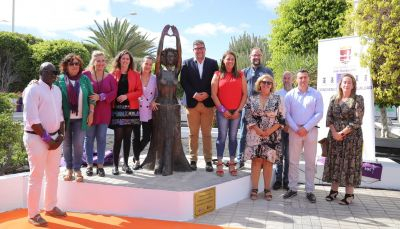 La directora del Instituto Canario de Igualdad (ICI), Kika Fumero, y el alcalde de San Bartolomé, Isidro Pérez, inauguraron este martes la escultura homenaje a todas las víctimas y resilientes de las violencias machistas realizada por la artista Cintia Machín Morín.