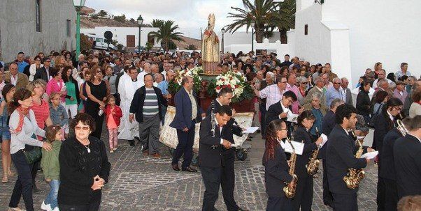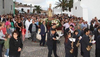 Una vez finalizada la santa misa se puso en marcha la procesión. Cuando la imagen de San Marcial llegó al pórtico de la iglesia, fue recibida con vítores y aplausos. En ese momento, la banda municipal de Yaiza también dio su saludo, interpretando una composición propia para la ocasión.
