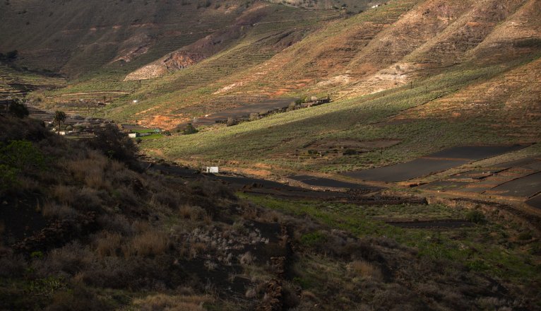 Las lluvias de las últimas semanas han hecho brotar los campos de Lanzarote, que sorprenden a los residentes por mostrar un color verdoso más vivo de lo habitual.