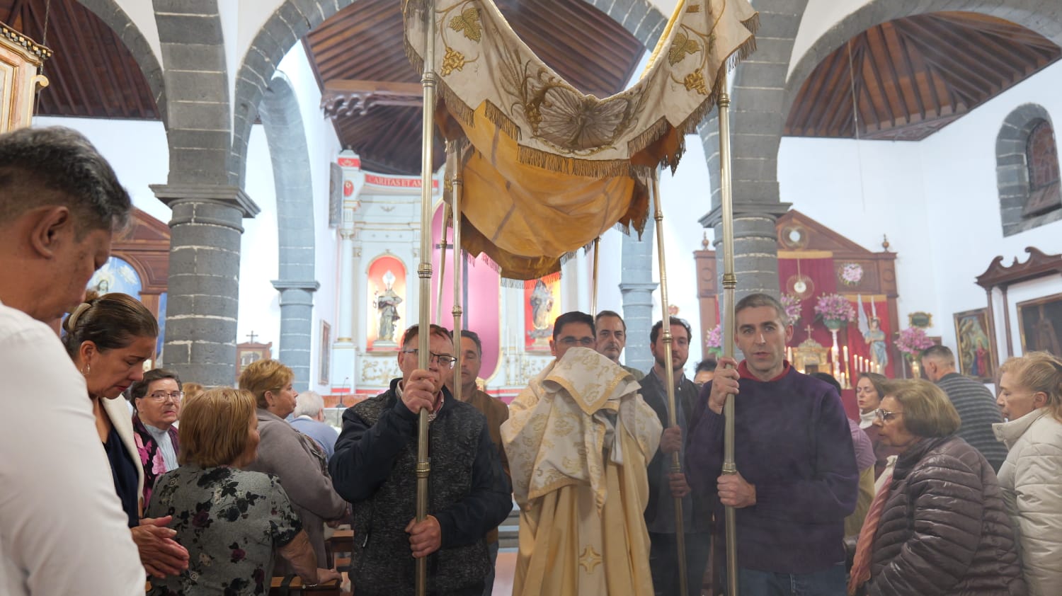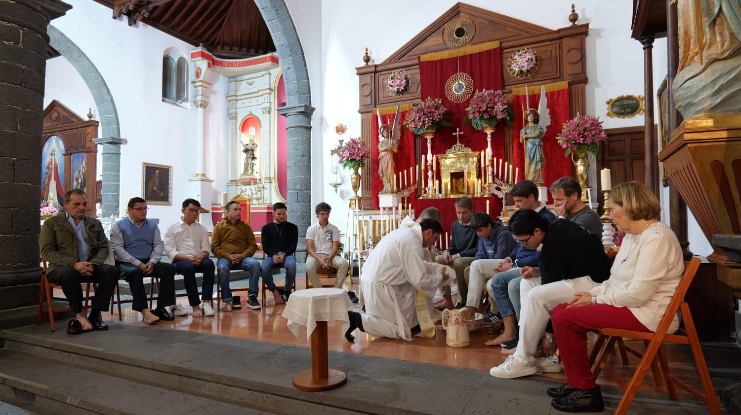 En la iglesia matriz de San Ginés Obispo a las 19´30 horas comenzó la celebración presidida por el párroco titular, Juan Carlos Medina, amenizando los cantos el 'Coro Parroquial' dirigido por el profesor de Religión, José Juan Umpiérrez. Las lecturas para esta celebración son muy especiales; la primera es del libro del Éxodo (Prescripciones sobre la cena pascual), la segunda lectura es de la primera carta del apóstol San Pablo a los corintios (Cada vez que coméis de este pan y bebéis de este vino, proclamáis la muerte del Señor).