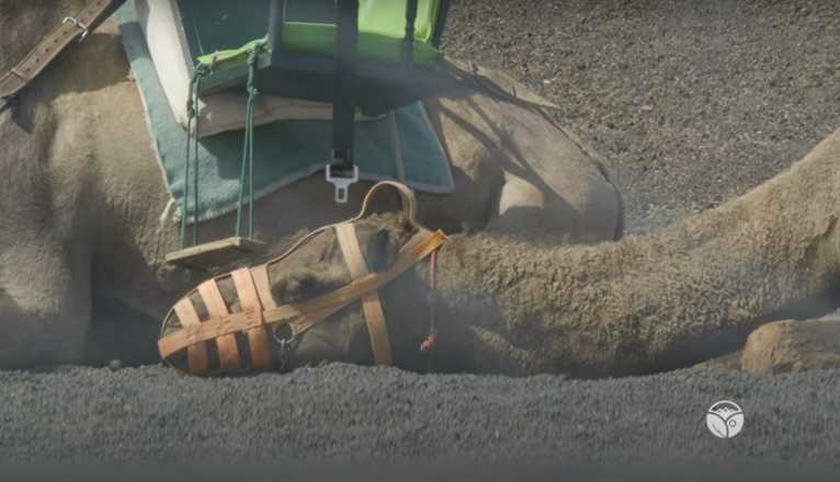 Además, ambos colectivos han difundido también un vídeo mostrando cómo a estos dromedarios -a los que habitualmente se llama camellos en la isla- “trabajan en condiciones que comprometen seriamente su bienestar”.