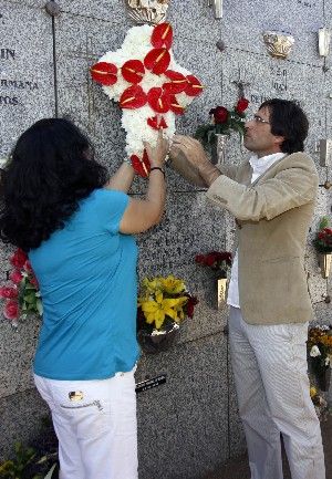 El presidente del Cabildo de Lanzarote, Pedro San Ginés, junto al vicepresidente primero, Fabián Martín; el director de los CACTs, Pedro Fraile; la viuda de Jesús Soto, sus familiares, y una representación de los trabajadores participaron en la ofrenda floral, que tuvo lugar a las 11 horas junto a su sepultura en el cementerio de Arrecife.