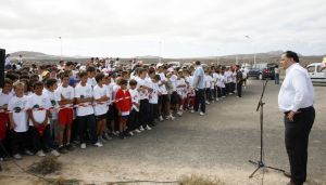 En la Carrera de la Sonrisa, organizada por el Servicio Insular de Deportes en colaboración con el Club La Santa, este martes, 20 de mayo, han participado 900 niños de entre 9 y 12 de años que han partido desde la Isleta de La Santa. Allí ha estado presente el consejero de Deportes, Manuel Cabrera.