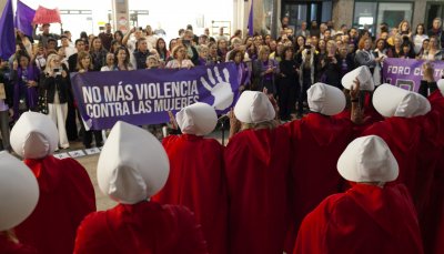 En esta ocasión, algunas de las personas asistentes optaron por ataviarse como los personajes de la novela de Margaret Atwood, El Cuento de la Criada, cuya adaptación a la pequeña pantalla la ha convertido en una de las series más relevantes de la última década. Esta serie distópica transcurre en un país totalitario y regido por un gobierno cristiano, donde las mujeres fértiles son forzadas y explotadas sexualmente.