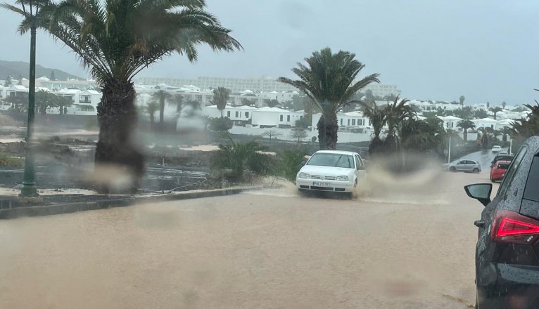 Las lluvias han comenzado a caer de forma intensa en Lanzarote. Desde las 13.00 horas han hecho correr los barrancos y anegado las calles.