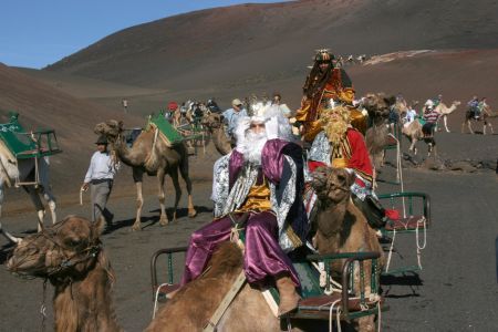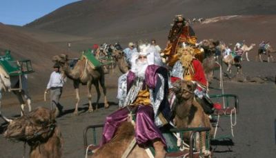 Melchor, Gaspar y Baltasar ya han pisado suelo conejero. Lo han hecho con su tradicional paseo por Las Montañas de Fuego, preludio de las típicas Cabalgatas de Reyes que se sucederán por la isla durante toda la jornada del viernes. La ilusión y la expectación crecen por momentos y los nervios comienzan a aflorar aunque no sólo en los más pequeños sino también en los mayores que esperan ilusionados la llegada de Sus Majestades de Oriente.