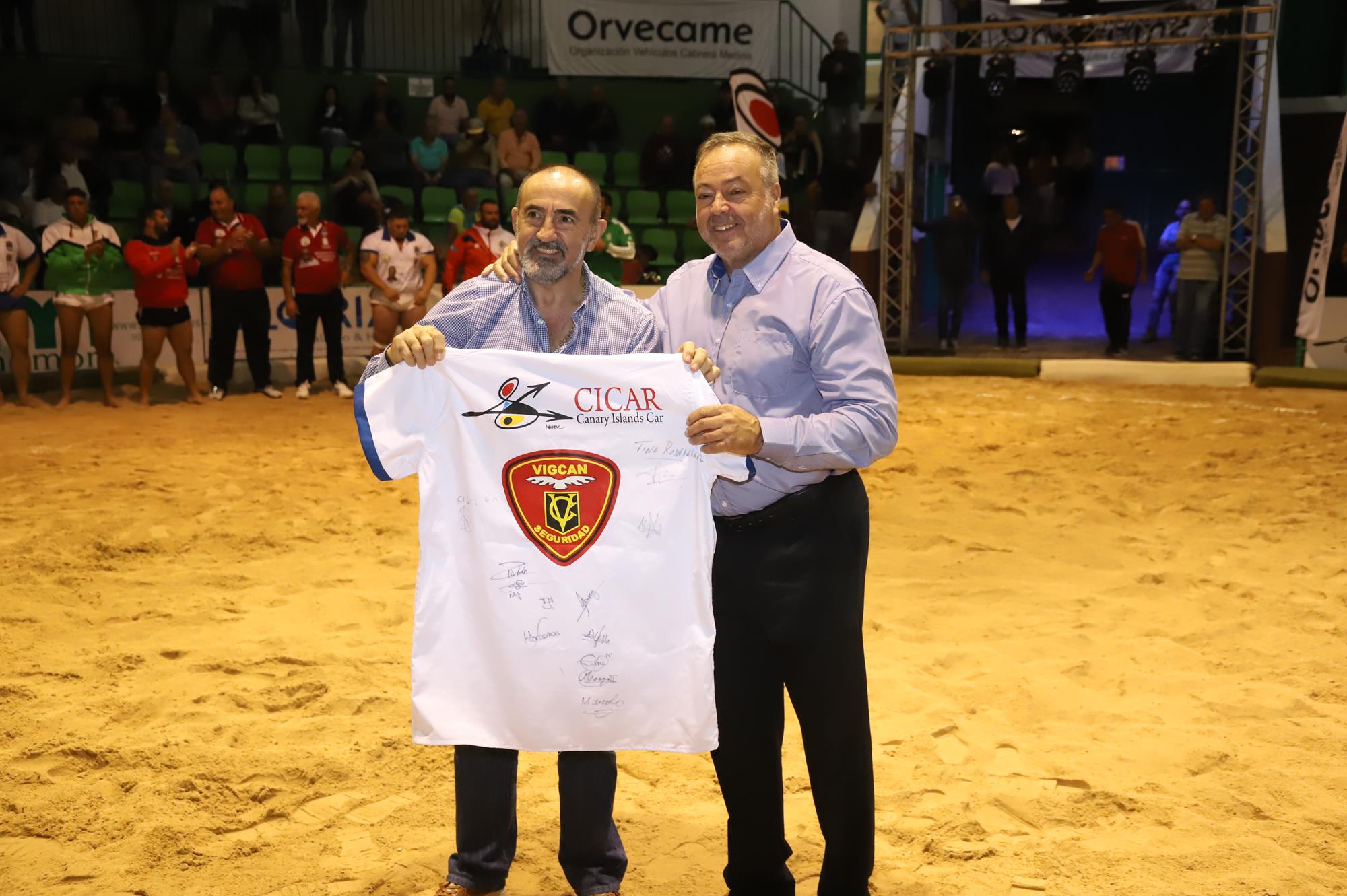 Después tomó posesión en la mesa presidencial junto a la presidenta del Cabildo de Lanzarote, María Dolores Corujo, el presidente de la Federación de Lucha Canaria de Lanzarote, Sebastián Lemes, y al concejal de Deportes del Ayuntamiento de Teguise, Gerardo Rodríguez, comenzando a desarrollarse el contenido del programa con la exhibición de un espectáculo de danza seguido de una proyección de vídeo con varios mensajes de felicitación por compañeros y amigos contando con el saludo del alcalde de Ayuntamiento de Teguise, Oswaldo Betancort.