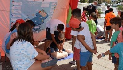 Mame Fernández pudo constatar la importancia de la información transmitida a los asistentes, quienes, en este caso, fueron 46 niños que están llevando a cabo diferentes actividades de verano. Los niños ejecutaron ejercicios prácticos de reanimación cardiopulmonar (RCP) y formaron parte del taller de pintura de camisetas con el número de emergencias 112.