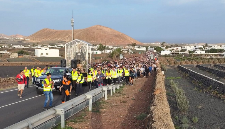 A las seis de la mañana se ha celebrado la misa y posteriormente ha comenzado la peregrinación de la Virgen de Los Volcanes que recorrerá los 22 kilómetros de distancia que separa Mancha Blanca de Arrecife.