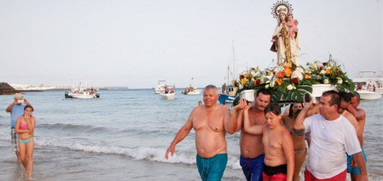 La misa oficiada en la iglesia por el párroco Sixto Álvarez y animada por treinta voces de la Coral de Valterra Iris del Mar precedió el traslado de la imagen de la Patrona por devotos y acompañantes hasta la playa. Los que portaron a la Virgen fueron guiados por niños y jóvenes de la Escuela de Música de Yaiza que interpretaron piezas folklóricas.