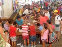 El día continuó con la fiesta de cometas, que se desarrolló de 11.00 a 14.00 horas y de 16.00 a 18.00 horas, con talleres de construcción, decoración y vuelo de cometas, e instalación de varios grupos de banderas de múltiples colores, turbinas de giro continuo y botellas recicladas que giran sin cesar, todos ellos anclados en la arena.
