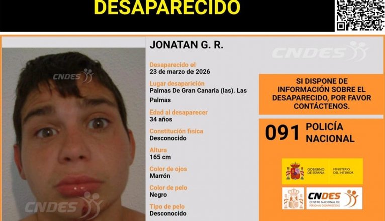 La Policía Nacional pide la colaboración ciudadana para poder localizar a Jonatan J.R., de 34 años, desaparecido en Las Palmas de Gran Canaria desde el pasado 23 de marzo.