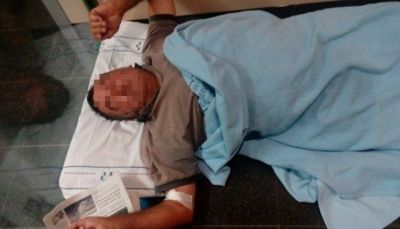 Tirado en la puerta de Urgencias y con carteles contando su situación. Esta fue la protesta que este martes llevó a cabo un ciudadano de Lanzarote en el Hospital Molina Orosa, que afirmaba tener "principio de gangrena" y haber sido echado "a la calle" por no haber camas.