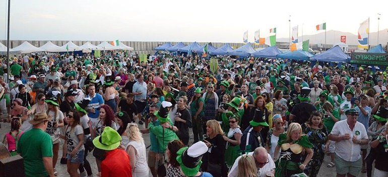 La plaza de El Varadero de Puerto del Carmen vivió el domingo una multitudinaria fiesta por el Día San Patricio, el santo patrón de los irlandeses, cuya celebración promueve el Ayuntamiento de Tías, a través de la Concejalía de Turismo, desde el año 2013.