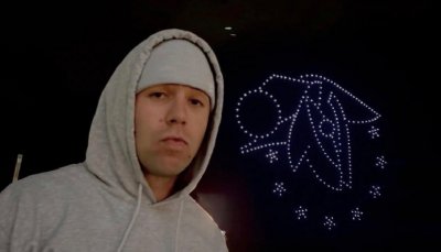 Después de mostrar una silueta del Roque Nublo, del Teide y de una pintadera, el espectáculo de drones mostró en el firmamento que 'El Baifo' verá la luz "esta semana", e incluso esbozó lo que se presume que puede la portada del álbum, con la cabeza de un baifo y las ocho estrellas, que representan a todas las Islas Canarias