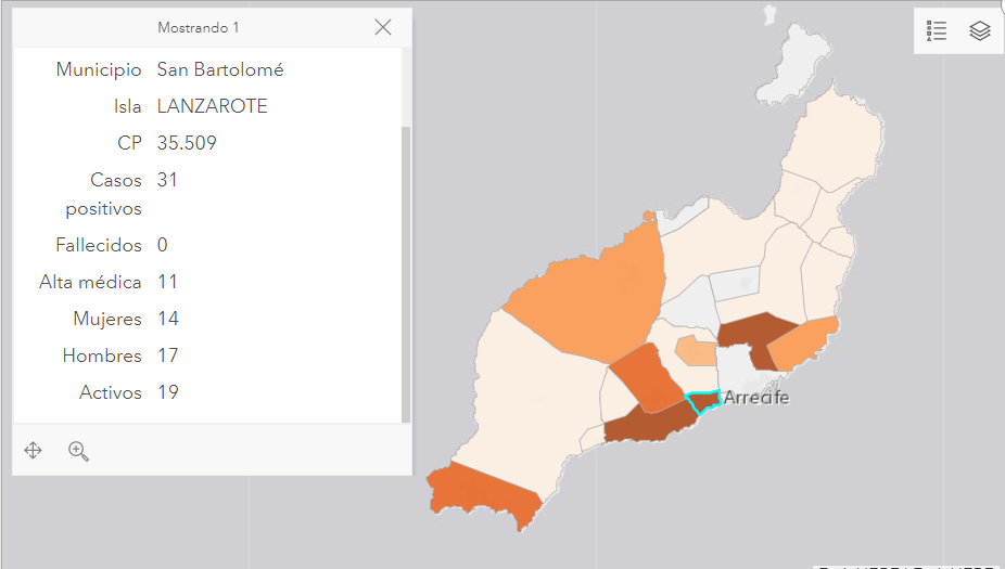 La distribución de casos teniendo en cuenta el lugar de residencia y no de declaración influye también directamente en la incidencia de casos por número de habitantes en cada municipio. En el caso de Arrecife, las últimas cifras de la Consejería la situaban en 735,06 casos por 100.000 habitantes, mientras que teniendo en cuenta la residencia se reduce a 550,9 (lo que también sigue superando con creces la media de España).