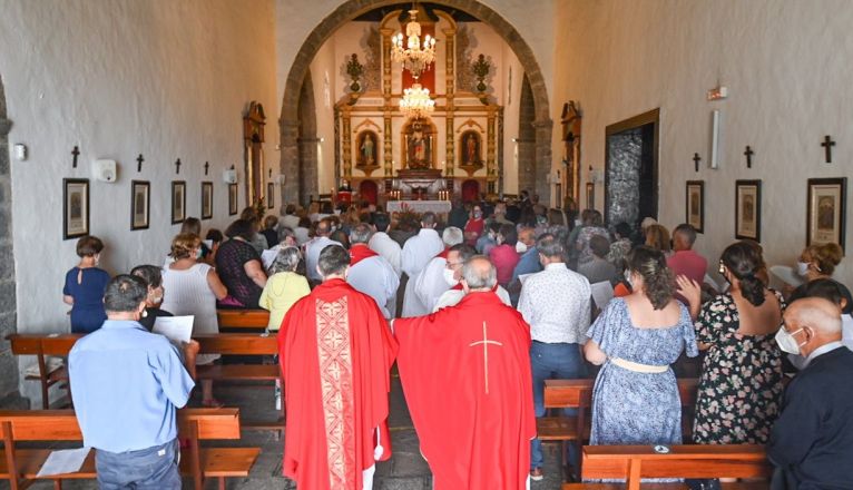 Como cada año, la función religiosa, que se ofició a las 12.00 horas, contó con una gran afluencia de vecinos, entre los que se encontraba el pregonero de las fiestas. Al acto también asistieron la presidenta del Cabildo, María Dolores Corujo, y la viceconsejera de Educación del Gobierno de Canarias, María Dolores Rodríguez.