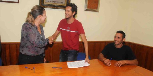 La alcaldesa de San Bartolomé, María Dolores Corujo, ha entregado este miércoles los contratos a las 37 personas que resultaron adjudicatarias de unas parcelas municipales, ubicadas en la zona del Monte, para su cultivo. El contrato tiene una vigencia de 5 años y el Ayuntamiento prevé entregar un porcentaje de la producción de las parcelas al Banco de Alimentos municipal. Todas las parcelas tienen entre los 5.000 y 7.000 metros cuadrados.