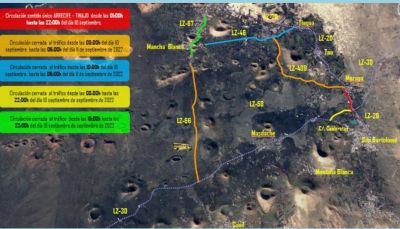Se cerrará al tráfico la carretera en ambos sentidos, desde las 08:00 horas del día 10/09/22 hasta las 06:00 horas del día 11/09/22. Ésta es la única carretera por donde se permitirá el tráfico de transporte colectivo público.
