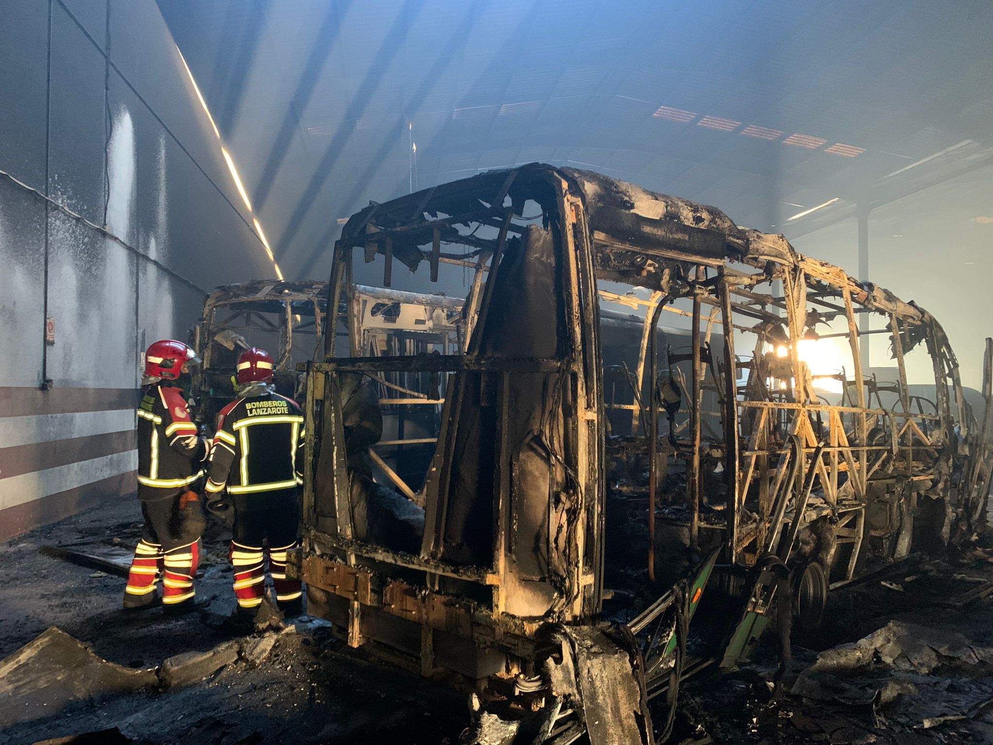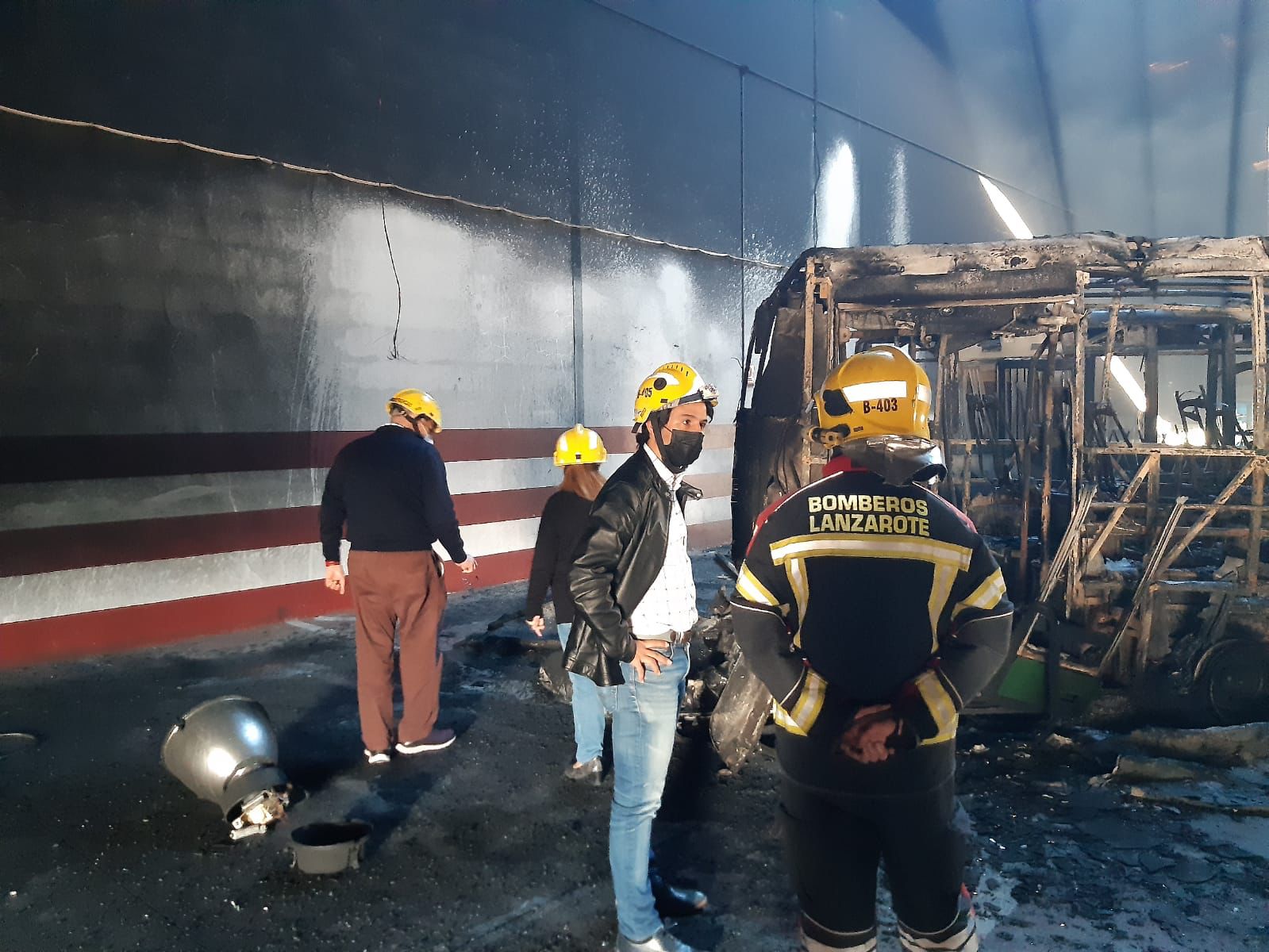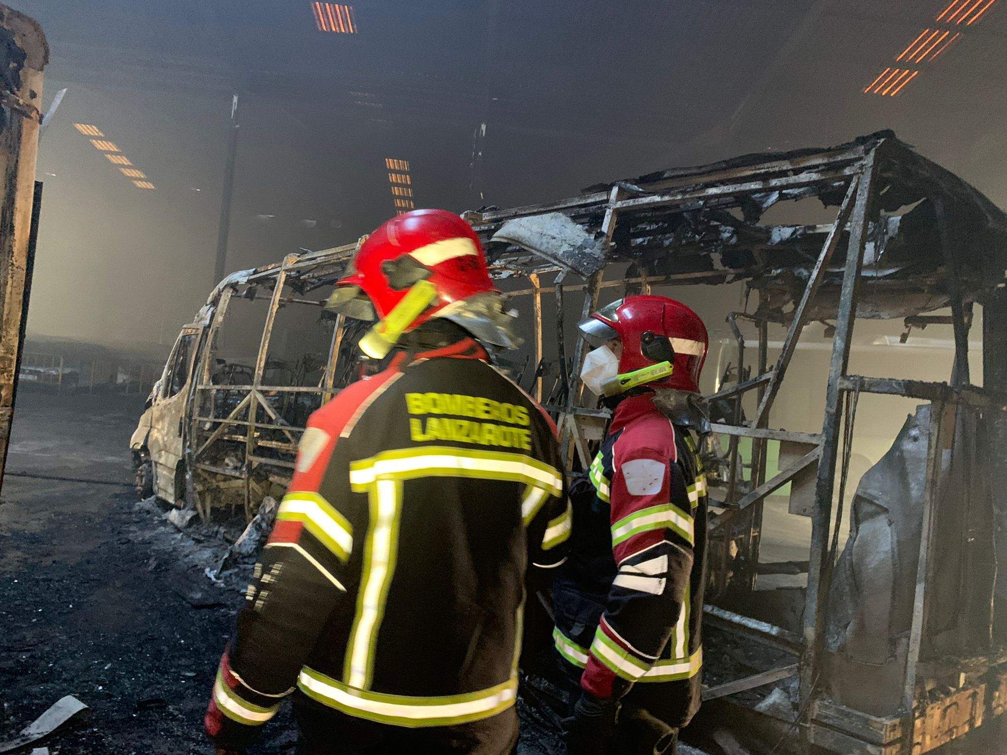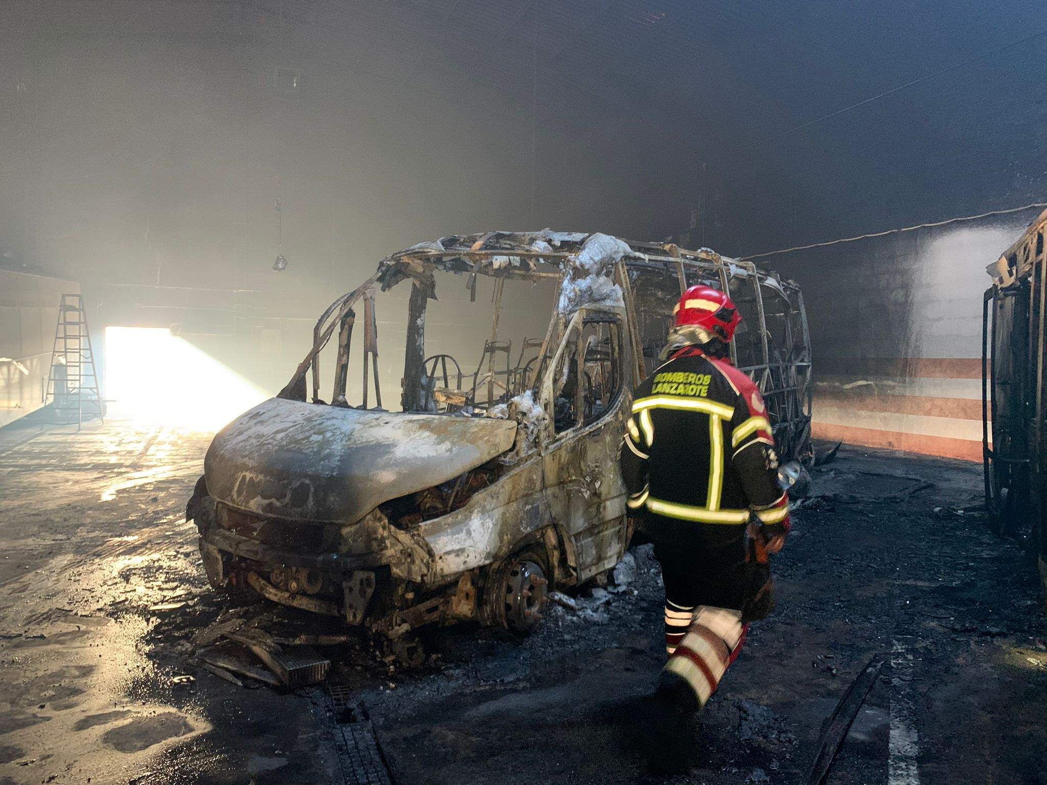 Esas tres guaguas se encontraban en el taller, y gracias a eso se han librado del incendio y han podido iniciar el servicio a las 08:00, con hora y media de retraso. De los otros 6 vehículos que tiene el Ayuntamiento de Arrecife en la nave, dos han quedado calcinados y cuatro impregnados por el hollín y la ceniza del incendio, por lo que tienen que someterse a una profunda limpieza.