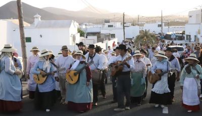 A las 19,00 horas desde las inmediaciones de la ermita se inició el recorrido por las diferentes calles del pueblo con los carros engalanados tirados por burros y los acordes musicales de las parrandas animando el recorrido. Durante el mismo los romeros disfrutaron de una tarde alegre y participativa donde no faltaron los huevos sancochados, los rocos, bizcochones, torrijas, alguna pella de gofio amasado y un buen trozo de queso sin olvidar el buen vino de Lanzarote con alguna que otra cerveza para hacer más llevadero el recorrido evitando que las gargantas se resintieran con los cantares.