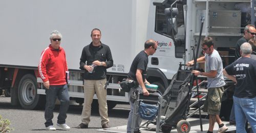 Expectación en la rotonda de la Fundación César Manrique (Tahíche) estepasado viernes por la noche durante el quinto día de rodaje de Los Abrazos Rotos, última película de Pedro Almodóvar. Después de más de tres horas de pruebas y ensayos, el opel corsa rojo en el que supuestamente viajan los personajes de Penélope Cruz y Lluís Homar, avanzaba por control remoto alrededor del juguete de viento diseñado por el artista lanzaroteño. Un centenar de personas, además de las cuarenta que forman el equipo de rodaje, contenían la respiración ante la que iba a ser una de "las escenas esenciales" de la película, tal y como señaló el propio director manchego.