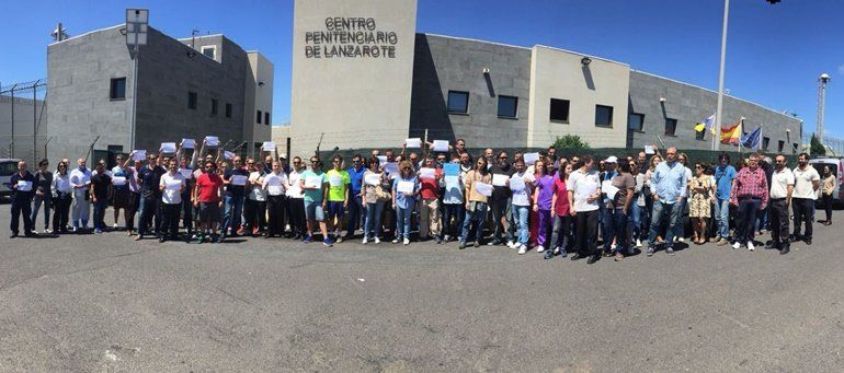 A gritos de "A palos no", trabajadores de la prisión de Tahíche se han concentrado este martes a las puertas del centro penintenciario en señal de protesta por la "brutal" agresión policial que sufrieron funcionarios de la cárcel sevillana de Morón de la Frontera la pasada semana. En el paro, que se ha extendido durante 15 minutos, los trabajadores de la cárcel de Tahíche han pedido asimismo la dimisión del secretario general de Instituciones Penitenciarias, Ángel Yuste,