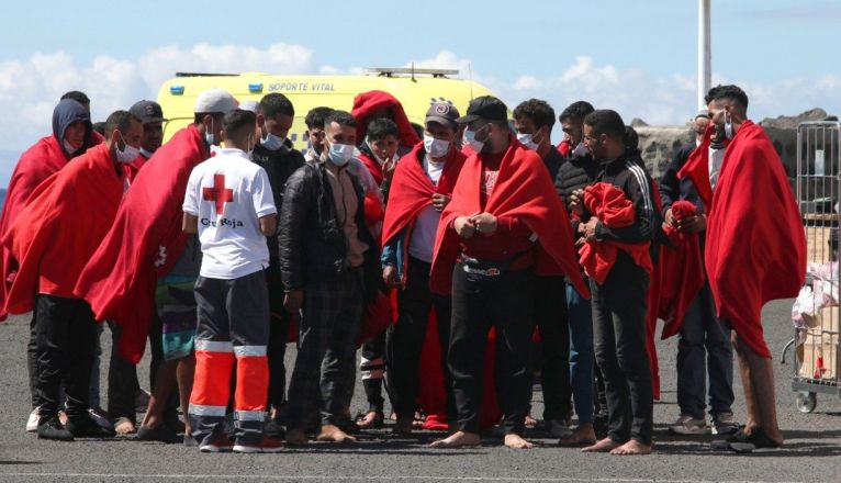 La embarcación fue avistada a 16 kilómetros de Lanzarote por un buque de la Armada, el BAM Meteorolo, y en ella viajaban 25 hombres de origen magrebí, todos ellos en buen estado de salud.