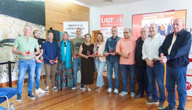 UGT Lanzarote celebró este jueves 1 de mayo la XI edición de los Premios a la Labor Sindical Miguel Barrios Miralles, en un emotivo acto que tuvo lugar en el Centro Cívico El Fondeadero, en Puerto del Carmen. La ceremonia, enmarcada en la conmemoración del Día Internacional de los Trabajadores, sirvió para rendir homenaje a quienes han mostrado un compromiso ejemplar con la defensa de los derechos laborales en la isla.