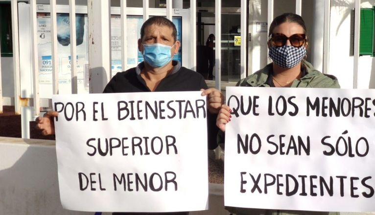 "Que los menores no sean un expediente", "Por el bienestar del menor", se leía en las pancartas que han portado en la protesta, que se ha celebrado ante la sede de Bienestar Social del Cabildo, donde Ulises y Gloria habían sido citados para una reunión por la Dirección General de Protección de la Infancia y la Familia del Gobierno de Canarias.