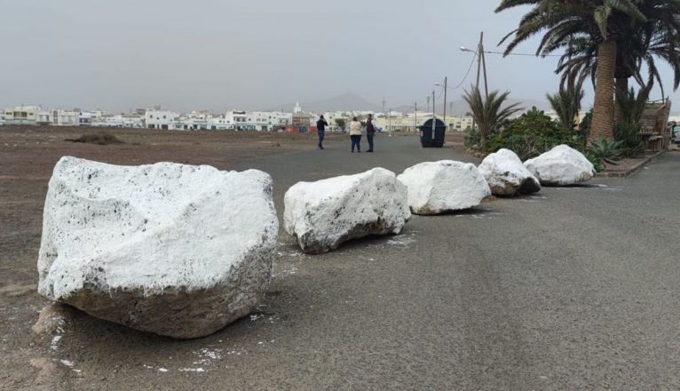 Una treintena de vecinos del barrio de Altavista, en Arrecife, se encontró con una fila de piedras en la única carretera asfaltada para entrar al barrio.