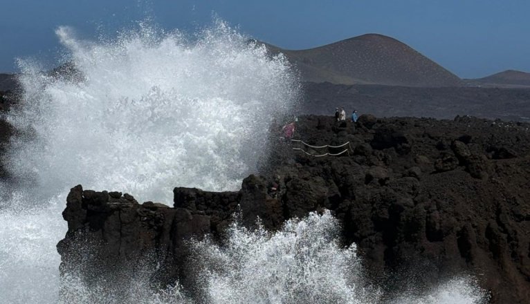Agentes de la Policía Local de Yaiza y el personal habilitado por el Consorcio de Emergencias han desalojado a los turistas que se encontraban en Los Hervideros este viernes por el fuerte oleaje de la zona, según ha informado el organismo.