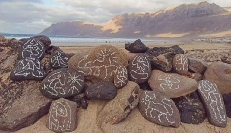 En concreto, las pintadas sobre las piedras en la playa de Famara ha despertado la indignación de la población, al haber pintado sobre elementos naturales.