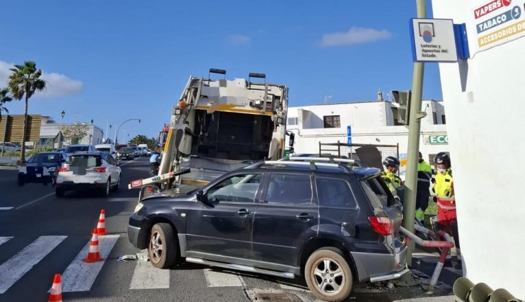 Una mujer resultó herida en la colisión de un coche contra un camión de la basura en la carretera general de San Bartolomé, según ha informado el Consorcio de Emergencias.