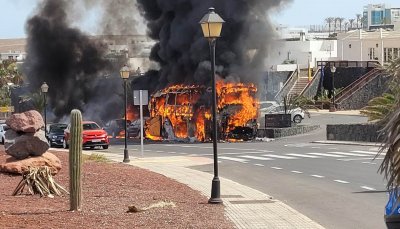 Según ha narrado un testigo a esta redacción, en la zona se podían escuchar varias explosiones. El vehículo pertenece a la empresa Canary Shuttle, encargada de trasladar a turistas entre el Aeropuerto de Lanzarote y los diferentes alojamientos turísticos de la isla.