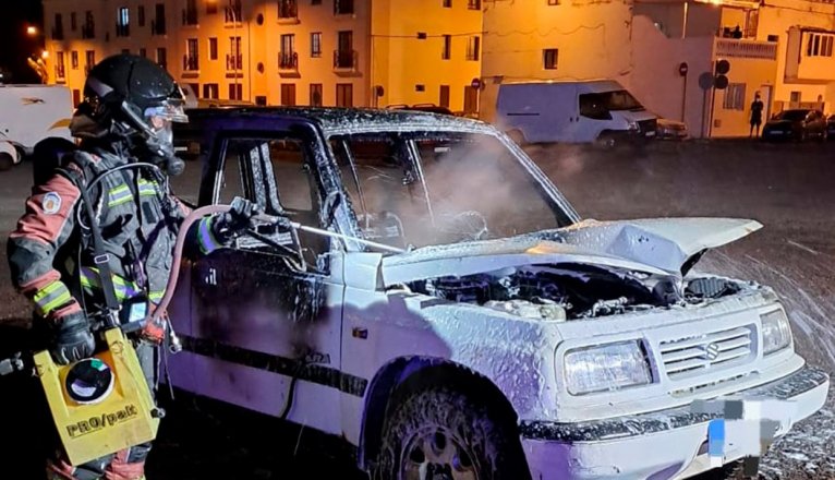 Un vehículo ardió en la noche del sábado al domingo en la calle Doctor Alfonso Espínola, en Arrecife, lo que obligó a la intervención de los bomberos del Consorcio de Seguridad y Emergencias de Lanzarote.
