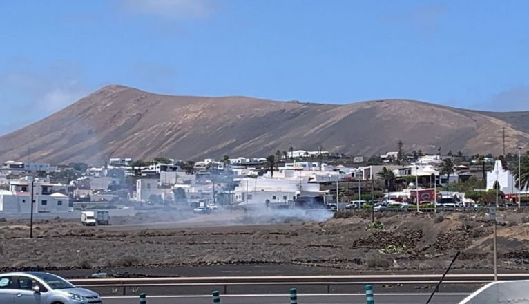 Los bomberos Voluntarios de Lanzarote han apagado este jueves un conato de incendio frente a la gasolinera de Mácher. El fuego se ha producido sobre las 13.45 horas en un solar cercano a la gasolinera y ha provocado una pequeña columna de humo.